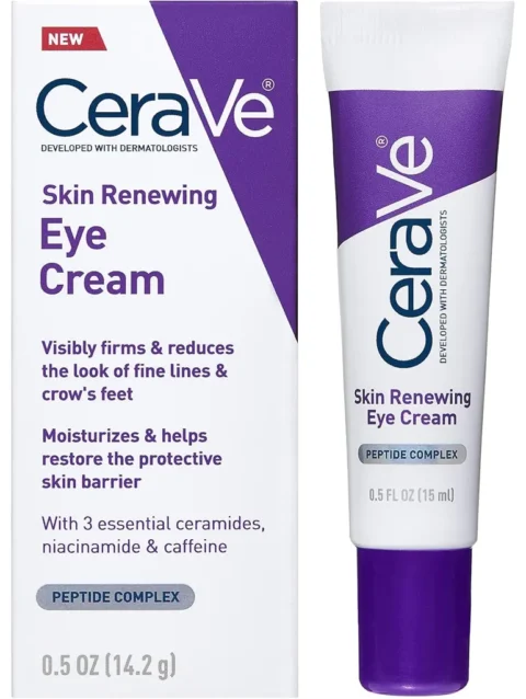 CeraVe Eye Cream for Wrinkles Under Eye Cream with Caffeine, Peptides, Free & Ophthalmologist Tested 0.5 Ounces, 0.5 Ounce (Pack of 1)